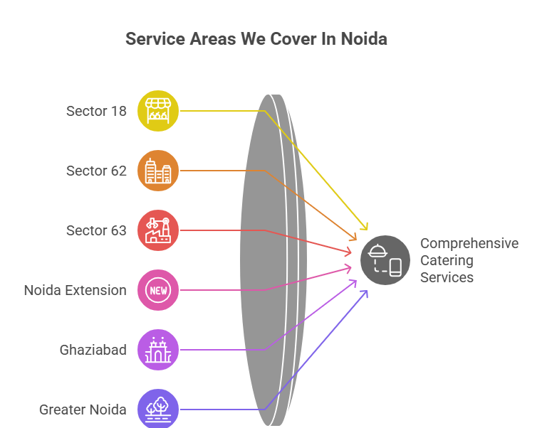 We provide across all major sectors and neighboring regions, catering services in Noida.